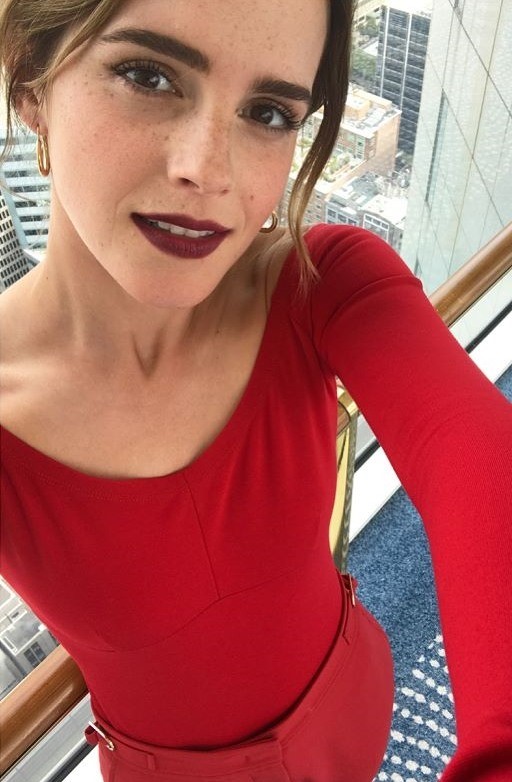 사진 속 엠마 왓슨은 상하의 모두 레드 컬러의 의상을 입고 강렬한 패션 센스를 선보였다. 여기에 립 메이크업도 레드립으로 강조해 매혹적인 분위기를 자아냈다.