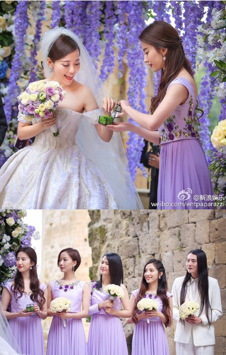 신부 측 들러리로 유역비를 비롯, 왕루단, 탄 웨이웨이 등이 나서 자리를 빛냈다. 플라워 패턴이 들어간 보랏빛 드레스를 입은 유역비는 긴 웨이브 머리를 가볍게 묶고 청순한 매력을 뽐냈다. 또한 유역비는 신부에 결혼반지를 직접 건네 눈길을 끌었다.