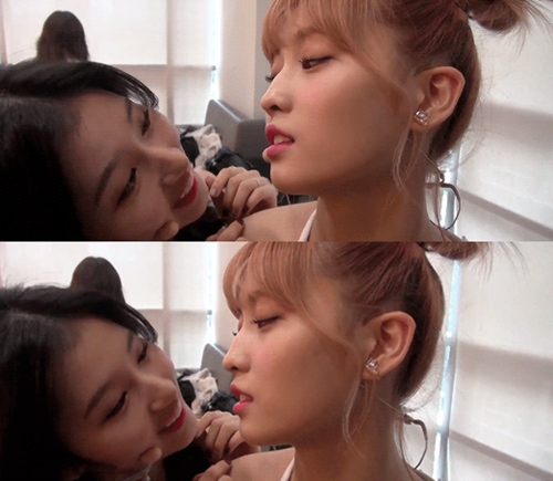 트와이스 활동 중에도 사나와 모모의 관계는 특별하다. 헤어스타일을 고쳐주는 것은 기본이고 포옹하며 애정을 표현한다.