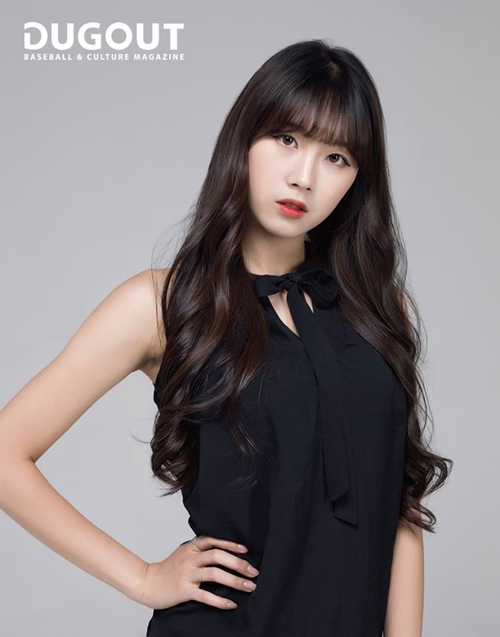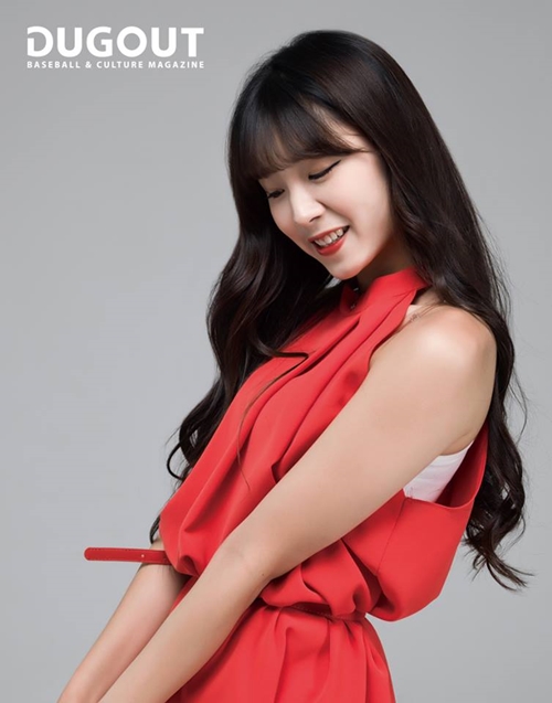 또 다른 화보에서는 웨이브진 헤어스타일에 다홍빛 원피스로 여성미를 강조, 야구장에선 볼 수 없었던 청순미를 뽐냈다. 어깨 선이 드러난 블랙 원피스로 시크한 매력도 선보이기도 했다.