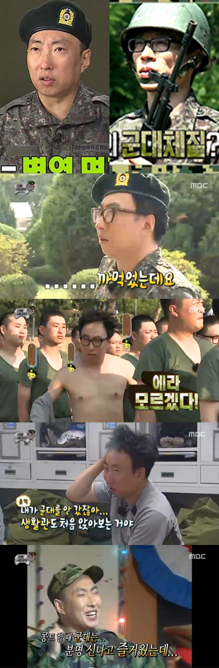 이후 보급품을 정리할 때도 박명수는 어리바리한 모습으로 웃음을 자아냈다. 저녁 점호를 하면서도 살얼음판을 걷는 듯 불안한 모습을 보였다. 우여곡절 끝에 박명수는 30분이 지나서야 점호를 끝낼 수 있었다.