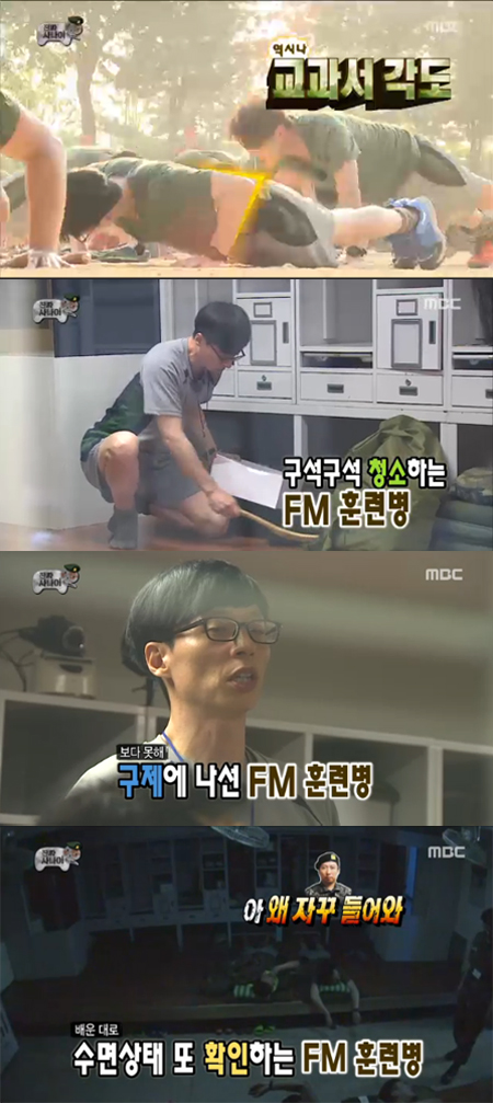 박명수와 반대로 유재석은 FM훈련병이었다. 유재석은 훈련을 받을 때도 젊은 훈련병에 밀리지 않는 체력으로 시선을 모았다. 또한 훈련병들 사이에서 가장 큰 목소리로 훈련에 임했다.
