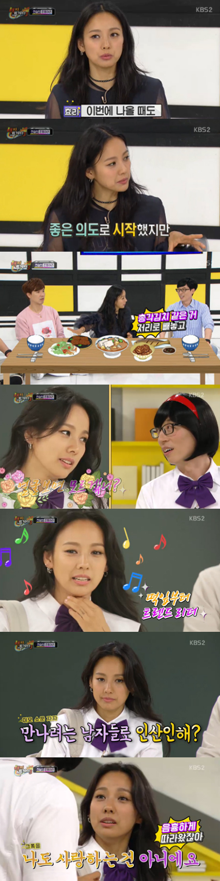 13일 오후 방송된 KBS2 예능프로그램 '해피투게더3'에서는 '전설의 조동아리' 코너로 꾸며져 이효리가 출연해 입담을 펼쳤다.