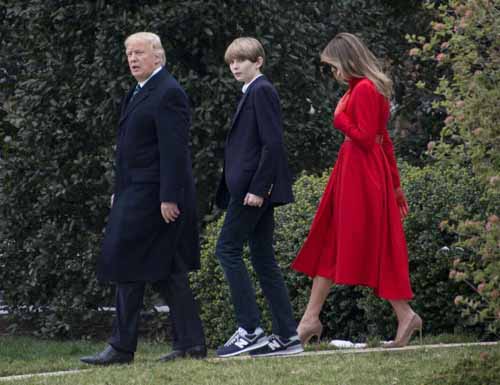 공개된 사진 속 트럼프 미국 대통령 부부와 아들 배런 트럼프의 모습이 담겨있다. 세 사람은 어딘 가를 향해 걷고 있다. 멀리서도 훤칠한 세 가족의 모습이 훈훈함을 자아냈다.