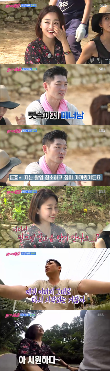 25일 오후 방송된 SBS '불타는청춘'에서는 배우 곽진영이 1년 만에 귀환하고 정유석이 새친구로 합류하는 모습이 그려졌다.