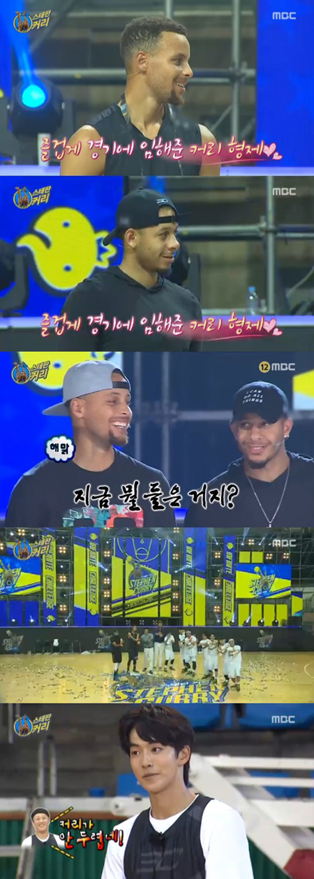 이후 스테판 커리와 실전 농구 경기가 진행됐다. 이날 커리 형제들은 멤버들의 환호 속 등장했다.