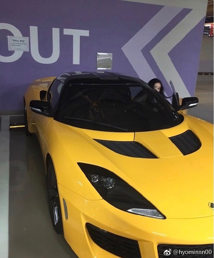 사진 속 효민은 1억 원을 호가하는 옐로 컬러의 슈퍼카를 타고 고개를 빼꼼 내밀며 귀여운 매력을 발산했다. 한눈에 봐도 고급스러운 디자인의 슈퍼카에 올라 포즈를 취하며 럭셔리한 일상을 공개해 눈길을 끌었다.