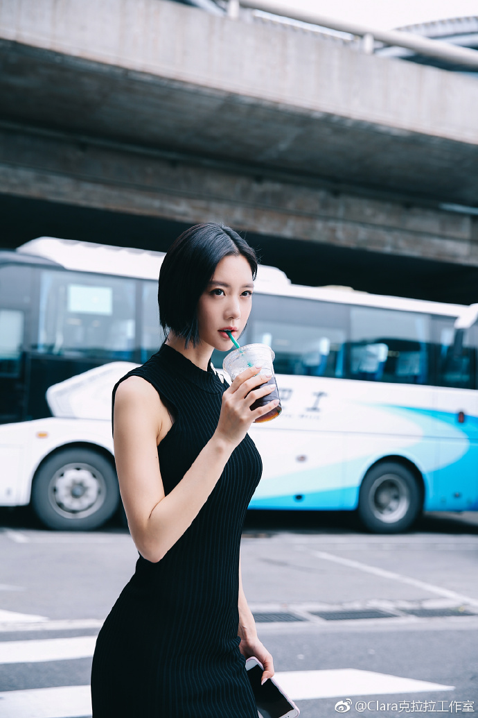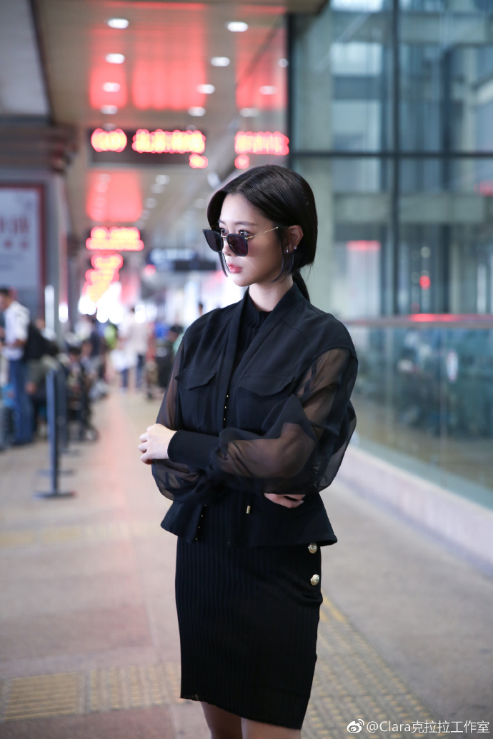 여기에 블랙 컬러의 선글라스와 재킷을 매치해 시크하면서도 세련된 룩을 완성했다. 휴대폰, 커피 잔을 들고 다양한 포즈를 취하며 존재감 있는 공항 패션을 강조했다. 특히 원피스 사이로 드러난 볼륨감 넘치는 몸매가 눈길을 끌었다.