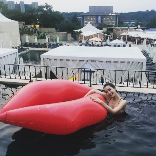 사진 속 이다해는 야외 수영장에서 입술 모양의 튜브를 타고 물놀이를 즐기고 있다. 레드 컬러의 원피스 수영복을 입고 군살 하나 없는 늘씬한 보디라인을 자랑했다.