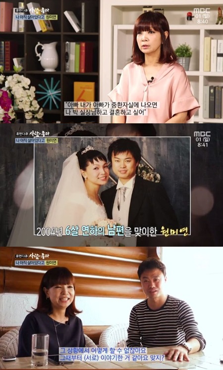 원미연은 "아버지가 폐렴으로 중환자실에 입원한 이후 "아버지가 퇴원하면 이 사람과 결혼하겠다고 생각했다"고 말했다. 이에 대해 박씨는 "내가 말도 꺼내지 않았는데 결혼을 한다고 해서 그때 부터 결혼 이야기를 시작하게 됐다"고 말했다.