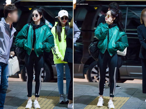 이날 팬들이 포착한 손나은은 레깅스 차림에 항공 점퍼를 매치했다. 포니테일로 스포티한 매력을 더한 손나은은 무결점 몸매로 눈길을 끌었다.