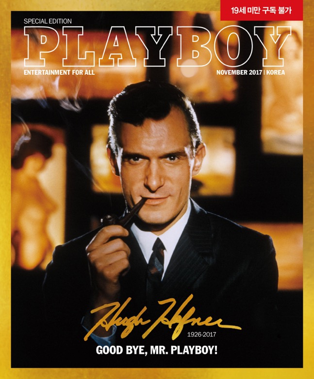 '플레이보이 코리아' 11월호 일반판 표지는 미국 플레이메이트 앨리 실바가 장식했다. '19금 특별 한정판' 표지는 지난 9월 고인이 된 플레이보이 창립자 휴 헤프너를 추모하기 위해 이례적으로 여성 모델이 아닌 휴 헤프너로 채웠다.
