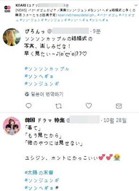 이 관심은 비단 국내뿐만이 아니라 중국과 일본에서도 이어졌다. 송중기, 송혜교가 결혼을 발표했던 지난 7월 5일 이미 그때부터 대부분의 중국 연예 매체들이 메인 기사로 송중기, 송혜교 커플의 결혼 소식을 집중적으로 다룬 바 있다.