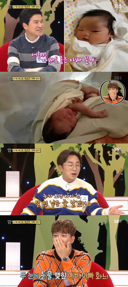 영상 속에서 이상인은 감격의 눈물을 펑펑 쏟았다. 이에 MC 김원희는 "아기보다 이상인 씨가 더 우는 것 같다"고 말해 웃음을 자아냈다. 생생한 출산 순간을 그대로 담아낸 영상에 예비 아빠인 김환은 함께 눈물을 흘렸고 '선배 아빠'가 된 이상인은 진심 어린 조언을 건네 눈길을 끌었다.