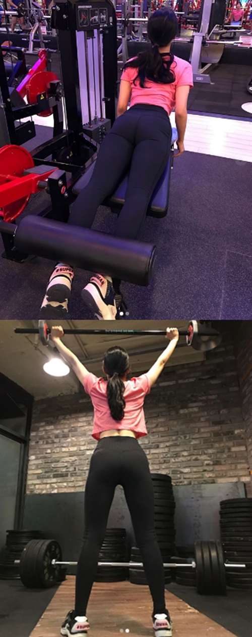 이날도 사유리의 몸매 과시는 남달랐다. 덤벨을 들고 있는 사유리는 쭉 뻗은 다리와 잘록한 허리라인을 과시했다.