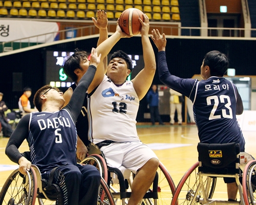 제주특별자치도는 17일 제주 제주시에 위치한 한라체육관에서 열린 '2017 KWBL 휠체어농구리그' 2라운드 마지막 경기 대구시청전에서 68대 42로 완승을 거뒀다. 이로써 제주특별자치도는 8전 전승으로 종합 순위 1위를 유지했다. 반면 대구시청은 6연패에 빠지며 시즌 전적 1승 7패가 됐다.