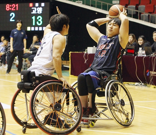 고양홀트는 19일 제주 제주시에 위치한 한라체육관에서 열린 '2017 KWBL 휠체어농구리그' 3라운드 대구시청과 경기에서 68-44로 승리했다. 18일 경기에서 리그 1위 제주특별자치도를 만나 접전 끝에 아쉽게 패한 고양홀트는 리그 최하위 대구시청을 꺾으면서 이번 라운드 첫 승을 따내게 됐다. 시즌 전적은 4승 6패다. 반면 이날 패배로 시즌 전적 1승 8패가 된 대구시청은 잔여 경기에 상관 없이 이번 시즌 최하위권이 확정됐다.