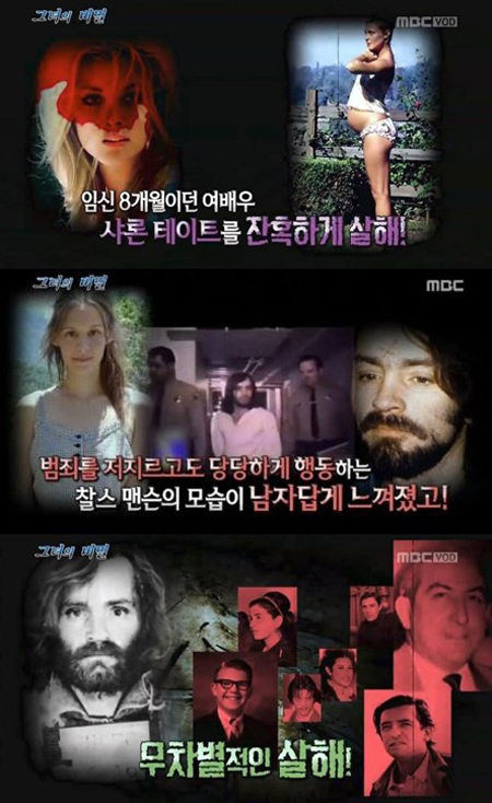 이외에도 그는 7명을 살해했고 자신의 추종자들에게 살해 지시를 내려 무려 28명을 숨지게 한 극악무도한 연쇄 살인범이다. 체포된 찰스 맨슨은 1971년 사형선고를 받았지만 이듬해 사형제도가 폐지되면서 종신형으로 감경됐다.