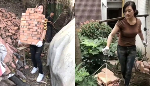 공개된 사진 속에는 어깨에 수십 개의 벽돌을 지고 노동 중인 메이의 모습이 담겼다. 보통 성인 남성들도 하기 힘들다고 꺼리는 일을 메이는 척척해낸다.