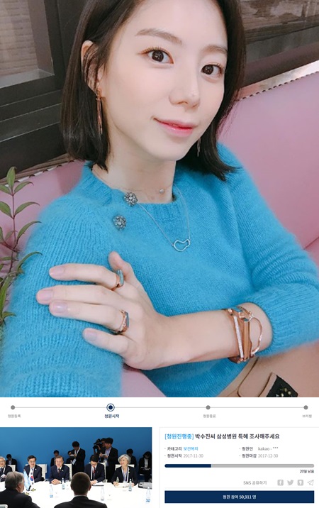 앞서 지난달 30일 한 네티즌은 "박수진 씨 삼성병원 특혜 조사해주세요"라는 제목으로 청와대 국민청원 게시판에 청원 글을 올렸다.
