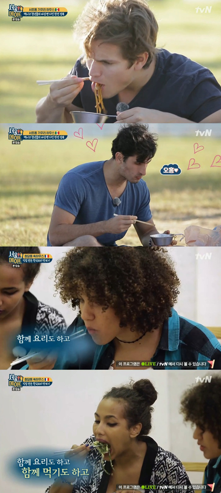 [스포츠서울 이게은 인턴기자] '서울메이트' 방송인 김숙, 배우 이기우의 메이트들이 한국 음식 먹방을 제대로 선보였다.