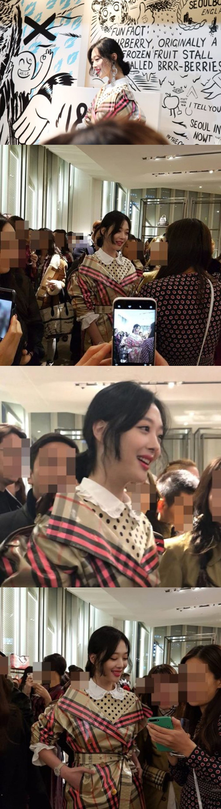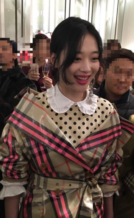 최근 온라인 커뮤니티에는 지난달 28일 서울 플래그십스토어 버버리 매장에서 포착된 설리의 모습이 공개됐다.