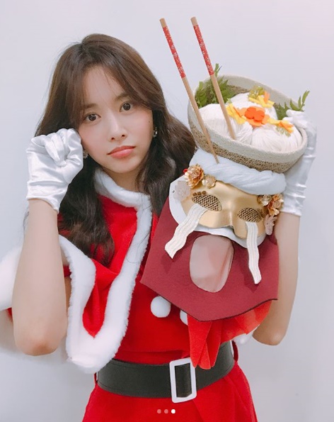 '복면가왕' 녹화 당시 입었던 '내 노래에 쫄면 안 돼 울면 안 돼' 의상을 그대로 입은 사진 속 한보름은 한 손에는 복면을 든 채 카메라를 응시하고 있다.