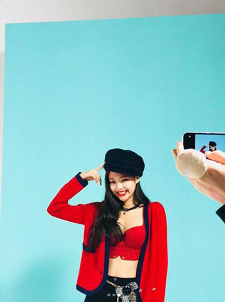공개된 사진 속 제니는 한 세트장에서 강렬한 레드 색 탱크 톱과 재킷을 입은 모습으로 깜찍하면서도 섹시한 매력을 드러냈다. 롱부츠와 핫팬츠로 코디하며 남다른 각선미도 뽐냈다. 작은 얼굴 크기로 독보적인 비율도 자랑했고, 긴 생머리와 투명한 피부로 청순미도 과시했다.