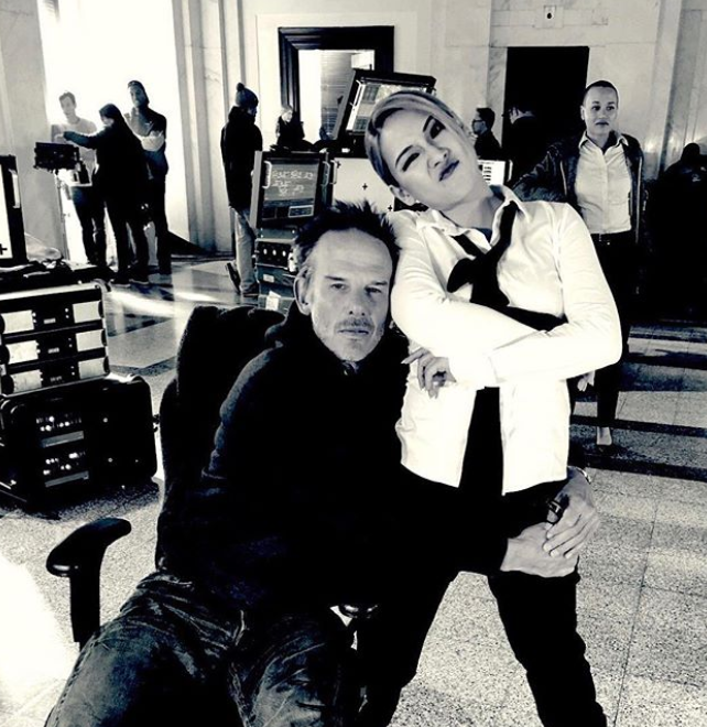사진 속 씨엘은 피터 버그, 존 말코비치과 함께 두 사람 사이에서 다정한 모습으로 카메라를 응시하고 있다. 장소는 피터 버그가 연출을 맡은 영화 '마일 22' 제작 현장으로 추정된다.