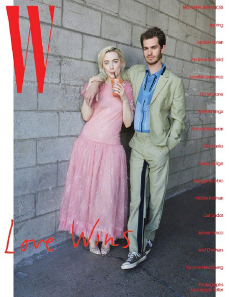 할리우드의 대표 절친 제니퍼 로렌스와 엠마 스톤의 우정도 빛났다. 누드톤의 드레스를 맞춰 입은 두 사람은 꼭 끌어안고 넘사벽 카리스마를 뽐냈다. 이밖에 톰 행크스와 메리 J 블라이즈, 시얼샤 로넌과 앤드루 가필드 등이 화보를 채웠다.