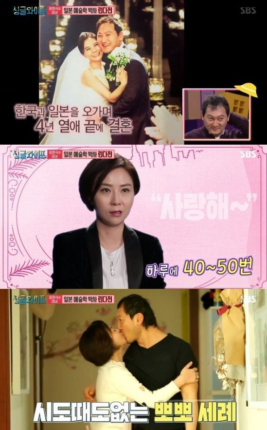 린다전은 정만식을 '애교쟁이'라고 표현하며 "하루에도 수십 번 '사랑해'라는 말과 뽀뽀를 해준다"라고 밝혔다. 정만식 역시 "뽀뽀는 눈 마주치면 한다"라고 덧붙였다.