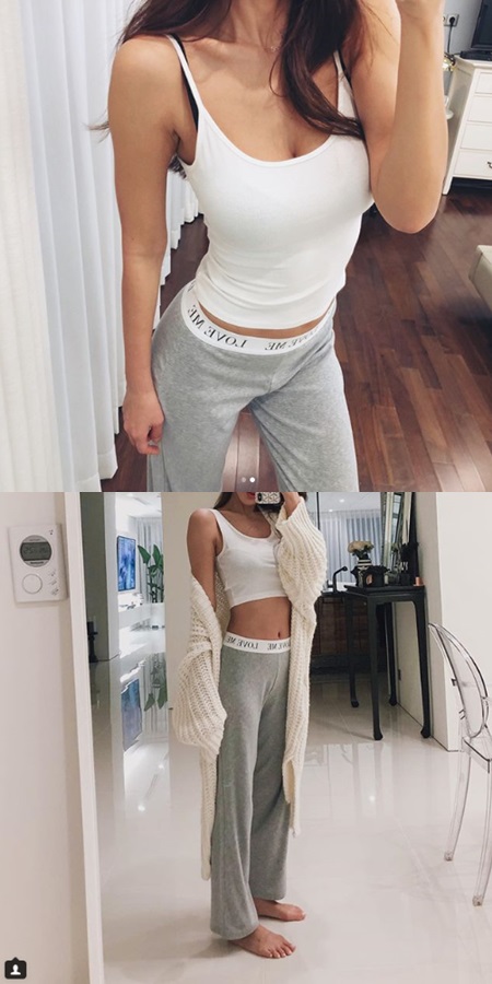 공개된 사진에는 회색 밀착 트레이닝팬츠와 타이트한 민소매티를 입고 셀카를 찍는 김준희의 모습이 담겼다. 그는 잘록한 개미허리와 함께 늘씬한 각선미를 선보였다.
