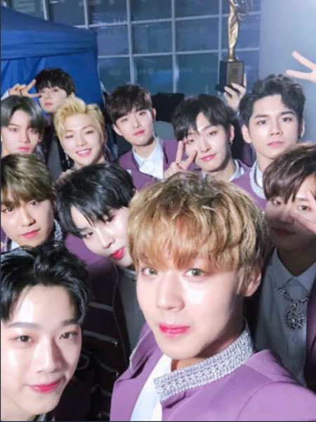 워너원 멤버들은 시상식이 끝난 직후 카리스마 넘치는 포즈를 취하며 인증샷을 남겼다. 블랙 슈트를 입고 훈훈한 기럭지와 비주얼을 뽐낸 워너원은 셀카 사진에서는 '귀요미'로 변신했다.