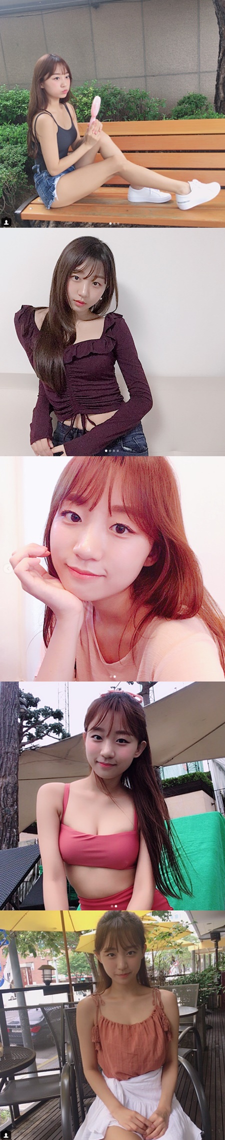 표은지가 직접 게재한 인스타그램 사진 속 그는 동그란 눈에 앳된 얼굴을 하며 상큼한 매력을 뽐냈다. 특히 귀여운 외모와 상반되는 늘씬한 몸매가 표은지의 반전매력을 배가시켰다.