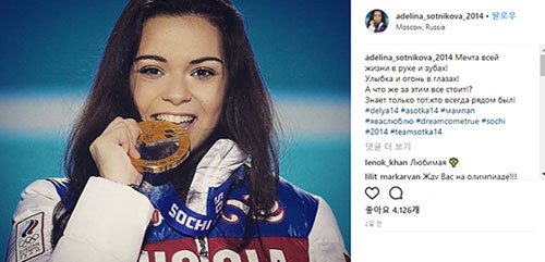 최근 온라인 커뮤니티를 중심으로 손연재가 2014소치동계올림픽 여자피겨스케이팅 싱글 우승자 아델리나 소트니코바(21·러시아) 관련 인스타그램 계정에 올라온 게시물에 '좋아요'를 눌렀다는 내용의 글이 퍼졌다.