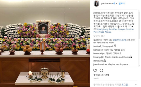 에브라는 2일 자신의 인스타그램을 통해 "이번에는 한국에서 좋은 소식을 전하지는 못했지만 내 형제 박지성을 돕기 위해 내 어머니도 잃어 버렸습니다. 왜냐하면 우리가 맨체스터에서 몇 년 동안 한국 음식을 소개했기 때문입니다. 항상 웃고 활력 가득 ... 엄마 사랑해, 너를 보호 해"라고 애도의 뜻을 전했다. 비록 문맥은 잘 맞지 않았지만, 한국어로 게재해 그 의미를 더했다.