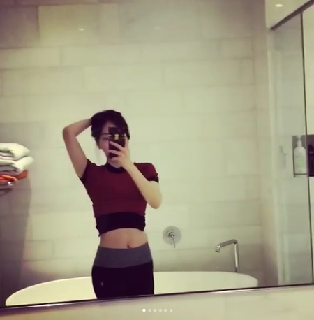 공개된 영상에는 초밀착 크롭 티를 입고 거울에 비친 자신을 셀카를 찍는 황 씨의 모습이 담겼다. 그의 한 줌 개미허리가 인상적이다.