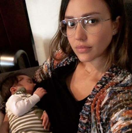 제시카 알바 곁에서 새근새근 자고 있는 아이의 모습이 보는 이들을 훈훈하게 만들었다.