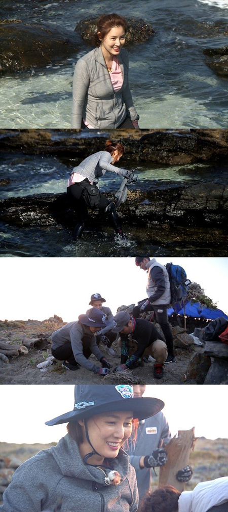 첫 바다 탐사에 나선 김성령은 바위에 붙어 있는 조개를 확인하고는 거침없이 물에 들어가 온몸으로 파도를 맞아가며 조개 캐기에 열중했다. 정글에 완벽 적응해 생존해나가는 김성령의 반전 모습에 '야생 베테랑' 김종민도 엄지를 추켜 올렸을 정도였다.