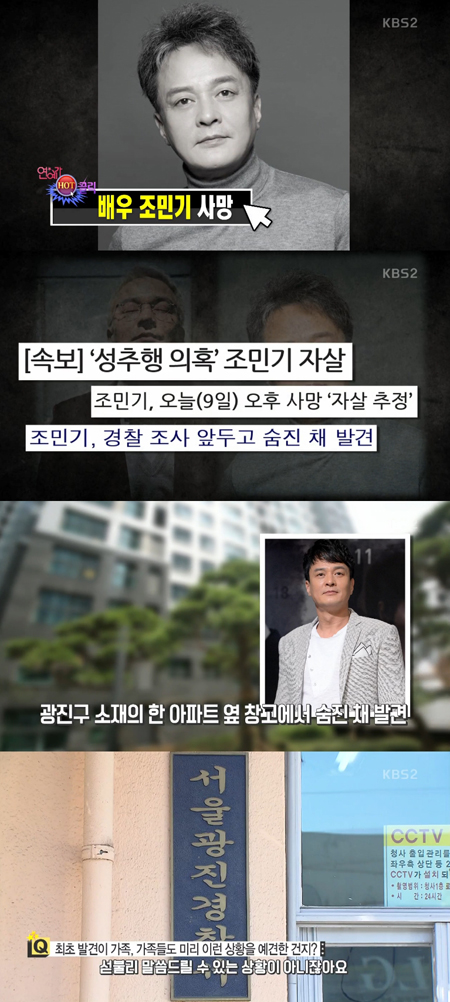 9일 방송된 KBS2 연예 정보 프로그램 '연예가중계'의 '연예가 핫 클릭' 코너에서는 조민기 사망 소식을 다뤘다.