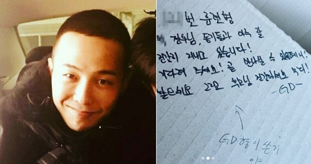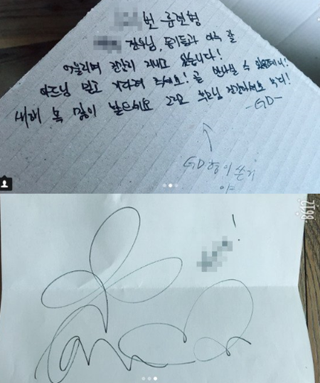 한 네티즌이 군에 간 자신의 오빠에게 받은 편지를 최근 인스타그램에 공개했다. 사인 한 장과 친필 편지였다. 오빠는 이 편지에 대해 "GD 형이 쓴 거야"라고 자랑했다.