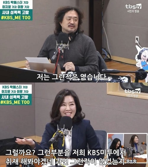 14일 한 매체는 tbs 교통방송 라디오 '김어준의 뉴스공장'의 정 모 PD가 최근 직위 해제됐다고 보도했다. 지난달 16일 KBS 기자들이 '방송국 내 미투'를 주제로 인터뷰를 진행하는 동안 스튜디오 밖 라디오 조정실에서 욕설한 것과 관련해 그런 처분을 받은 것으로 알려졌다.