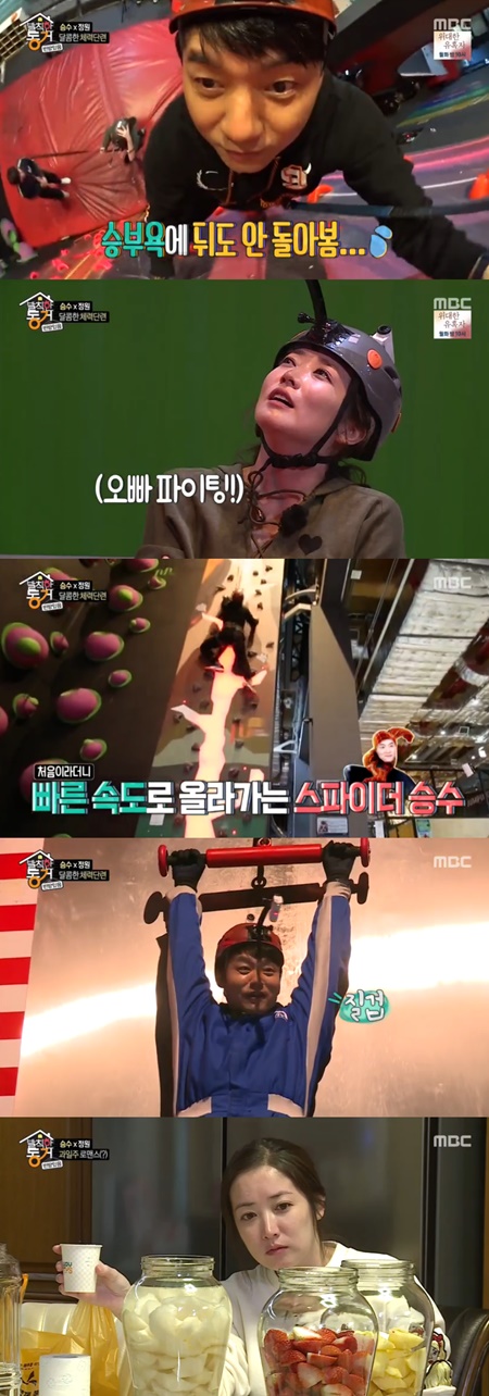 최정원은 김승수의 거침없는 모습에 자극을 받아 패기 넘치게 도전장을 내밀었지만 클라이밍 홀드에 대롱대롱 매달리는 등 뜻밖의 저질 체력을 인증했다. 이 가운데 김승수는 최정원의 헬맷을 손수 벗겨주고 기구에서 내려오는 최정원을 본능적으로 에스코트하는 등 다정남의 면모를 보였다고 전해져 이목을 집중시켰다.