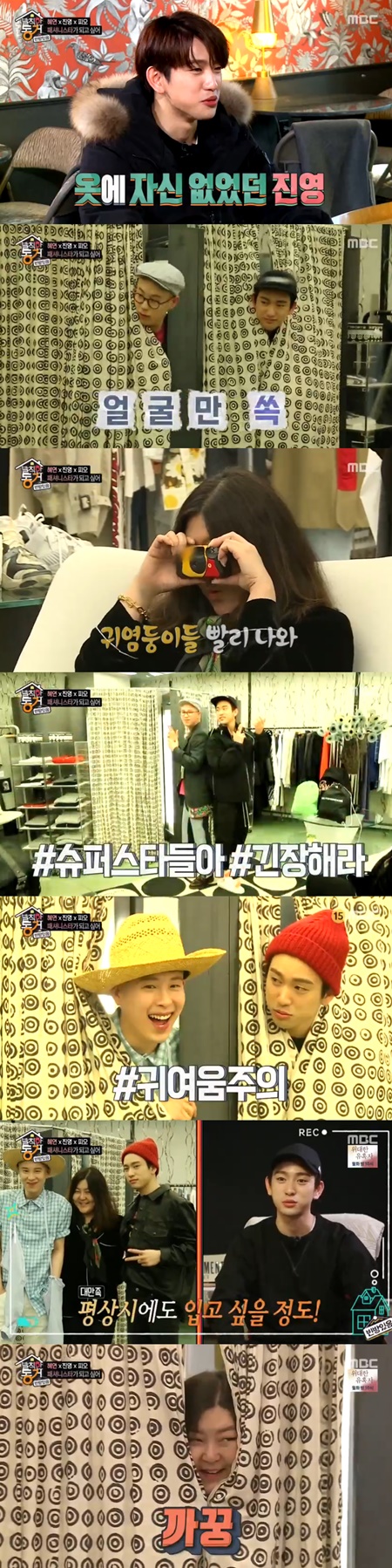 한혜연이 피오와 진영의 스타일링에 도전했다. 한혜연은 '슈스스(슈퍼스타 스타일리스트)'의 포스를 뿜어내며 옷을 골랐다. 평소 패션에 자신 없어 검은색 옷만 입는다는 진영에게 한혜연은 진영의 매력을 극대화할 스타일링에 열중했다.