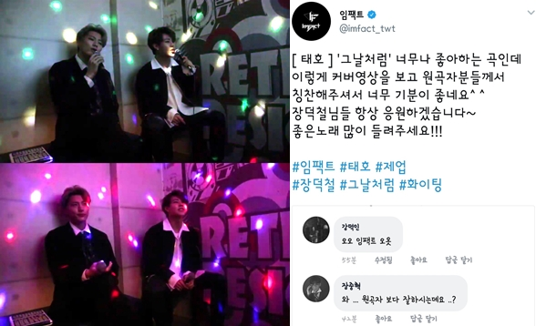 임팩트는 최근 공식 SNS를 통해 멤버 제업과 태호가 부른 장덕철의 '그날처럼'를 커버 영상을 공개했다.