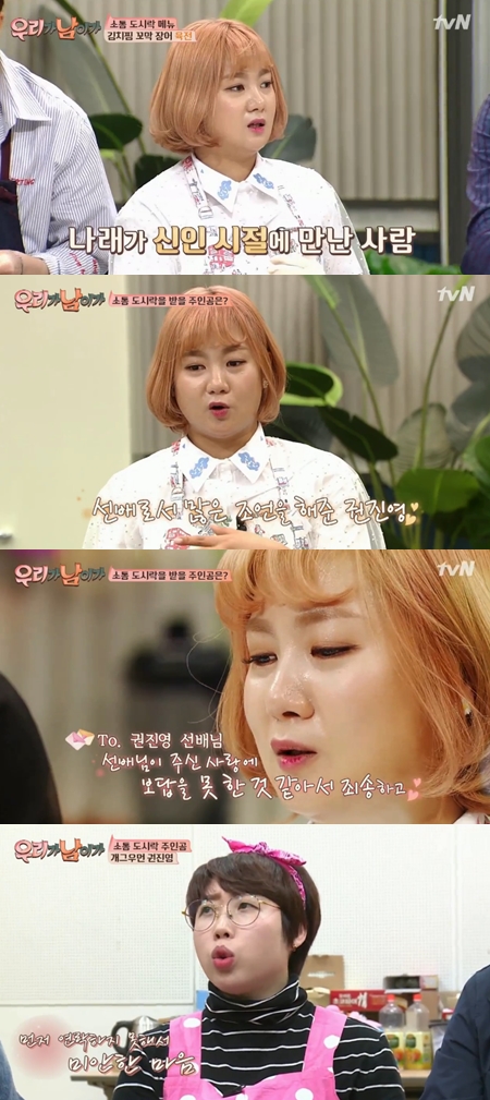 [스포츠서울 박준범 인턴기자] '우리가 남이가' 개그우먼 박나래가 선배 권진영에 대한 고마움과 미안함을 전했다. 더불어 무명시절에 대한 추억도 떠올렸다.