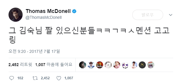 사진ㅣ올리브 제공, 토마스 맥도넬 SNS