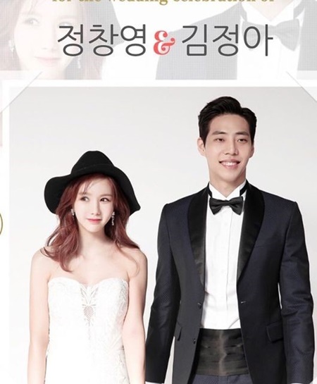 공개된 사진 속에는 정아와 정창영의 웨딩촬영 모습이 담겨 있다. 두 사람은 나란히 손을 잡고 있는가 하면 또 다른 사진에서 정창영은 정아의 볼에 뽀뽀를 하고 있다.