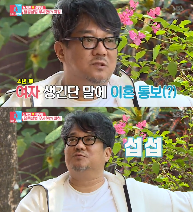 이어 이무송은 노사연과 앉아 "예전에 점을 보고 오더니 4년 후에 남편에게 여자가 생긴다는 점괘를 받고 이혼하자 한 적이 있었다"라고 말해 MC들을 놀라게 했다. 스튜디오에 있던 노사연은 "그런 적이 있었다"라고 인정했다.