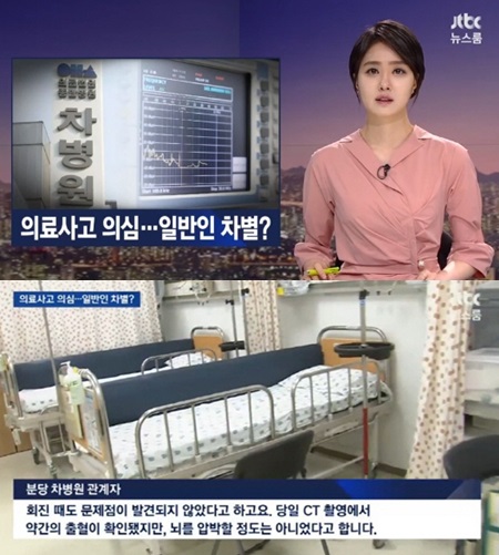 2일 오후 방송된 JTBC '뉴스룸'은 지난 2월 차병원에서 수술을 받은 환자가 석 달째 의식을 회복하지 못하고 있다고 보도했다. '뉴스룸'은 차병원 측은 의료 사고가 의심되는 상황인데도 모르쇠로 일관하고 있다고 전했다.